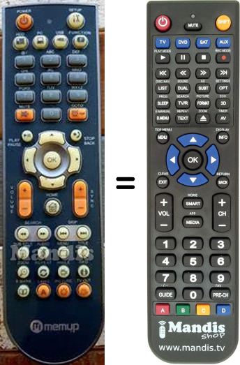 Aquest comandament a distància substitueix completament el teu Memup001 en totes les seves funcions. No és un comandament universal, sinó una còpia exacta del teu original.