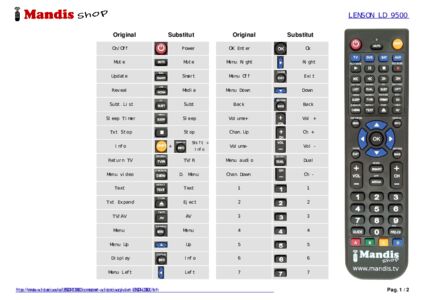 Inici > Marques > Comandaments a distància LENSON > Comandament per LENSON LD9500 > Distribució interactiva de tecles LENSON LD9500