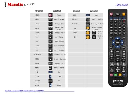 A continuació, us mostrarem la correspondència entre cada un dels botons del comandament original i el botó que realitza la mateixa funció en el comandament de substitució. En alguns casos, és possible que necessiti prémer la tecla SHIFT abans de prémer un altre botó per realitzar certes accions. Aquestes funcions addicionals sovint no s'utilitzen gaire i s'inclouen per facilitar la comprensió del comandament de substitució, o perquè el comandament original té més botons que el seu equivalent.