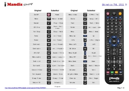 Inici > Marques > Comandaments a distància Shinelco > Comandament per Shinelco TVL1511D > Distribució interactiva de tecles Shinelco TVL1511D