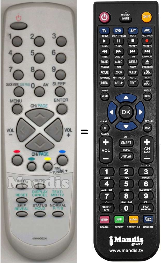 Comandament a distància que substitueix a l'original en totes les seves funcions.