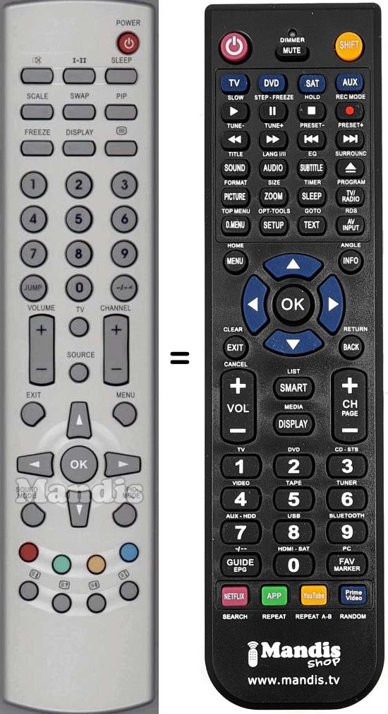 Comandament a distància que substitueix a l'original en totes les seves funcions. No es tracta d'un comandament universal sinó d'una còpia que substitueix l'original. Rebrà el comandament completament preparat per fer-lo funcionar només necessita posar-li les piles. No cal programar-lo. Té total garantia de que el comandament cumplirà amb les mateixes funcions de l'original.
