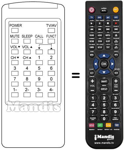 Comandament a distància que substitueix a l'original en totes les seves funcions. No es tracta d'un comandament universal sinó d'una còpia que substitueix l'original. Rebrà el comandament completament preparat per fer-lo funcionar només necessita posar-li les piles. No cal programar-lo. Té total garantia de que el comandament cumplirà amb les mateixes funcions de l'original.
