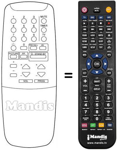 Comandament a distància que substitueix a l'original en totes les seves funcions. No es tracta d'un comandament universal sinó d'una còpia que substitueix l'original. Rebrà el comandament completament preparat per fer-lo funcionar només necessita posar-li les piles. No cal programar-lo. Té total garantia de que el comandament cumplirà amb les mateixes funcions de l'original.