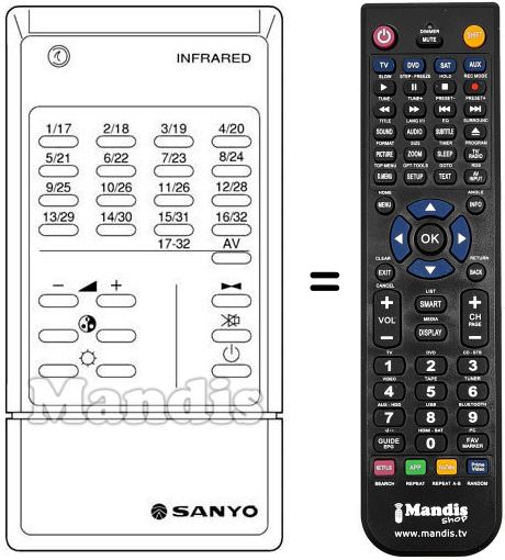 Comandament a distància que substitueix a l'original en totes les seves funcions.