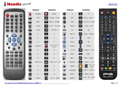 A continuació, us mostrarem la correspondència entre cada un dels botons del comandament original i el botó que realitza la mateixa funció en el comandament de substitució. En alguns casos, és possible que necessiti prémer la tecla SHIFT abans de prémer un altre botó per realitzar certes accions. Aquestes funcions addicionals sovint no s'utilitzen gaire i s'inclouen per facilitar la comprensió del comandament de substitució, o perquè el comandament original té més botons que el seu equivalent.