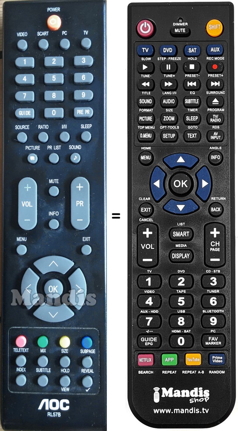 Comandament a distància que substitueix el comandament RL57B en totes les seves funcions.