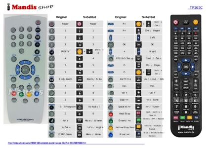 A continuació, us mostrarem la correspondència entre cada un dels botons del comandament original i el botó que realitza la mateixa funció en el comandament de substitució. En alguns casos, és possible que necessiti prémer la tecla SHIFT abans de prémer un altre botó per realitzar certes accions. Aquestes funcions addicionals sovint no s'utilitzen gaire i s'inclouen per facilitar la comprensió del comandament de substitució, o perquè el comandament original té més botons que el seu equivalent.