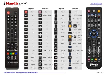 A continuació, us mostrarem la correspondència entre cada un dels botons del comandament original i el botó que realitza la mateixa funció en el comandament de substitució. En alguns casos, és possible que necessiti prémer la tecla SHIFT abans de prémer un altre botó per realitzar certes accions. Aquestes funcions addicionals sovint no s'utilitzen gaire i s'inclouen per facilitar la comprensió del comandament de substitució, o perquè el comandament original té més botons que el seu equivalent.