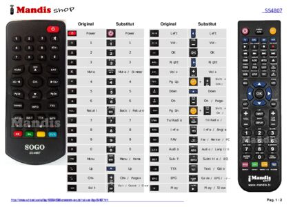 A continuació, us mostrarem la correspondència entre cada un dels botons del comandament original i el botó que realitza la mateixa funció en el comandament de substitució. En alguns casos, és possible que necessiti prémer la tecla SHIFT abans de prémer un altre botó per realitzar certes accions. Aquestes funcions addicionals sovint no s'utilitzen gaire i s'inclouen per facilitar la comprensió del comandament de substitució, o perquè el comandament original té més botons que el seu equivalent.