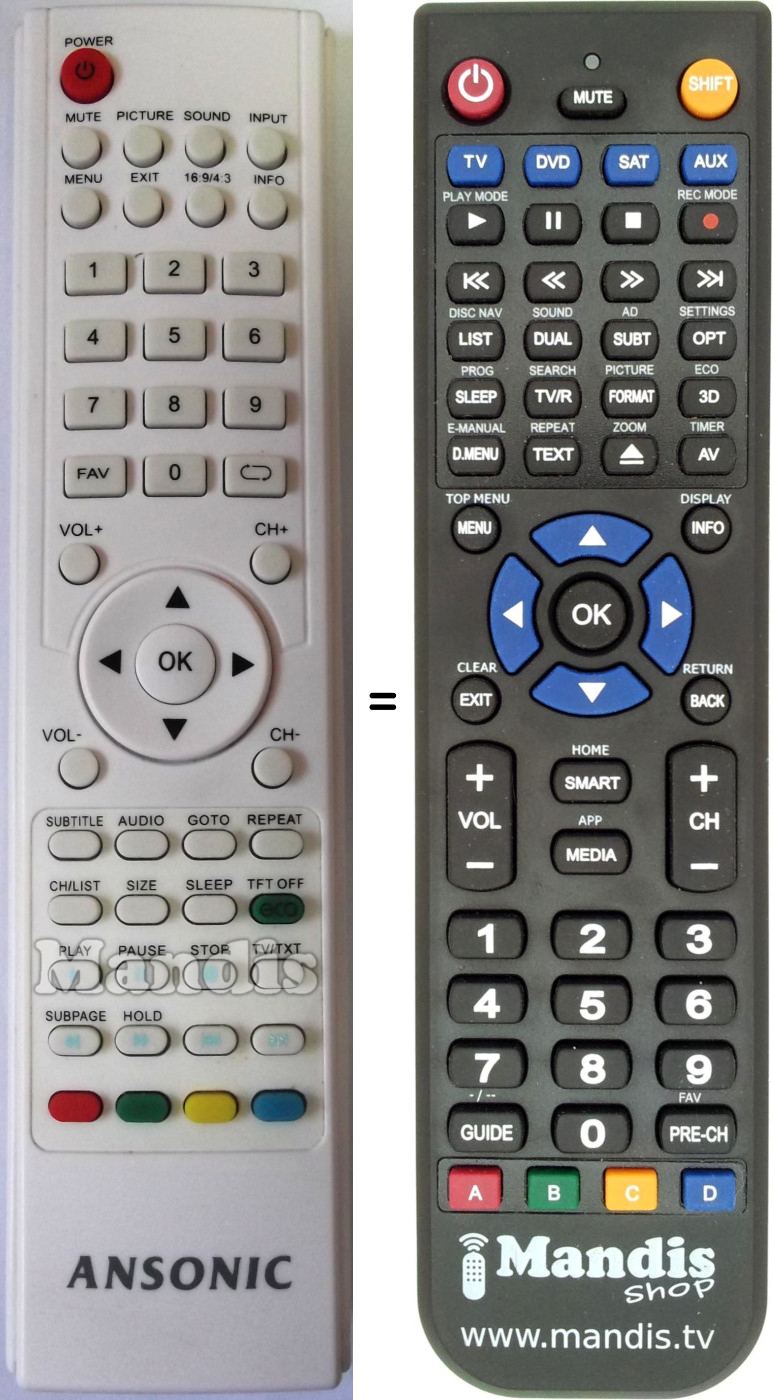 Aquest comandament a distància substitueix completament el teu ANS002 en totes les seves funcions. No és un comandament universal, sinó una còpia exacta del teu original.