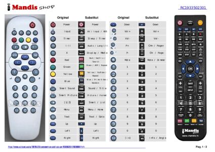 Aquest comandament a distància substitueix completament el teu RC1933502301 (313923809891) en totes les seves funcions. No és un comandament universal, sinó una còpia exacta del teu original.