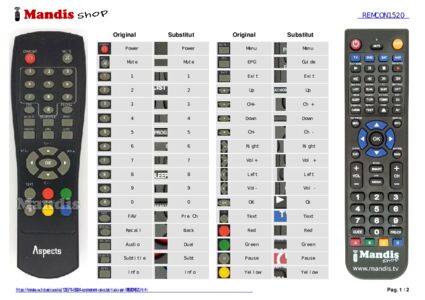 Aquest comandament a distància substitueix completament el teu REMCON1520 en totes les seves funcions. No és un comandament universal, sinó una còpia exacta del teu original.