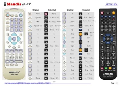Aquest comandament a distància substitueix completament el teu DVD Player (HTF2L26D4) en totes les seves funcions. No és un comandament universal, sinó una còpia exacta del teu original.