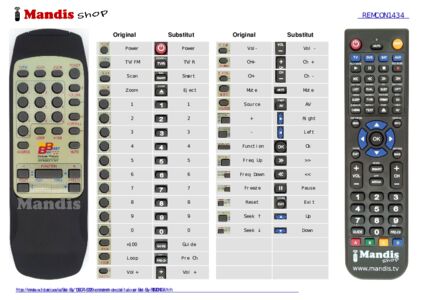 Aquest comandament a distància substitueix completament el teu REMCON1434 en totes les seves funcions. No és un comandament universal, sinó una còpia exacta del teu original.
