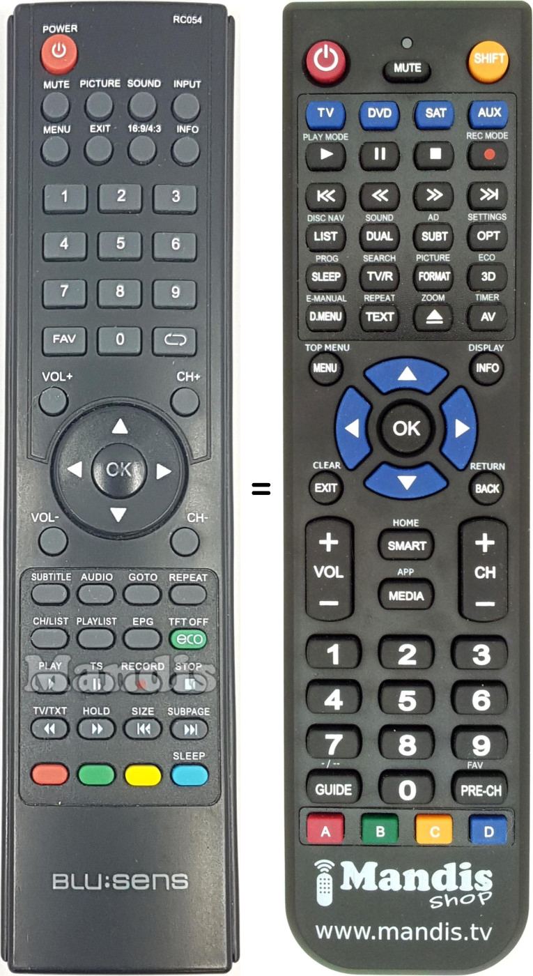 Aquest comandament a distància substitueix completament el teu RC054 en totes les seves funcions. No és un comandament universal, sinó una còpia exacta del teu original.