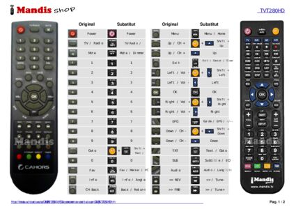 Inici > Marques > Comandaments a distància CAHORS > Comandament per CAHORS TVT280-HD