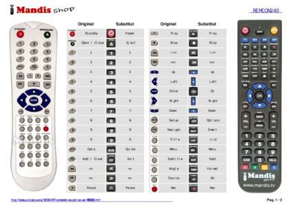 A continuació, us mostrarem la correspondència entre cada un dels botons del comandament original i el botó que realitza la mateixa funció en el comandament de substitució. En alguns casos, és possible que necessiti prémer la tecla SHIFT abans de prémer un altre botó per realitzar certes accions. Aquestes funcions addicionals sovint no s'utilitzen gaire i s'inclouen per facilitar la comprensió del comandament de substitució, o perquè el comandament original té més botons que el seu equivalent.
