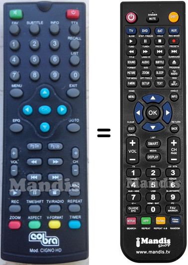Aquest comandament a distància substitueix completament el teu CIGNO HD DTT + SAT en totes les seves funcions. No és un comandament universal, sinó una còpia exacta del teu original.