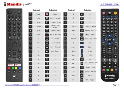 A continuació, us mostrarem la correspondència entre cada un dels botons del comandament original i el botó que realitza la mateixa funció en el comandament de substitució. En alguns casos, és possible que necessiti prémer la tecla SHIFT abans de prémer un altre botó per realitzar certes accions. Aquestes funcions addicionals sovint no s'utilitzen gaire i s'inclouen per facilitar la comprensió del comandament de substitució, o perquè el comandament original té més botons que el seu equivalent.