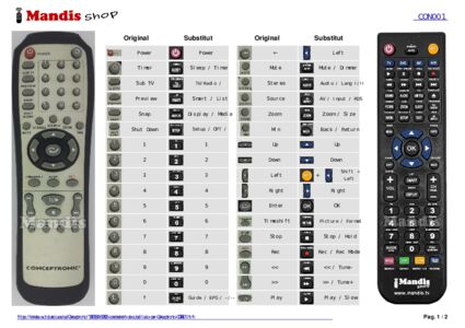 A continuació, us mostrarem la correspondència entre cada un dels botons del comandament original i el botó que realitza la mateixa funció en el comandament de substitució. En alguns casos, és possible que necessiti prémer la tecla SHIFT abans de prémer un altre botó per realitzar certes accions. Aquestes funcions addicionals sovint no s'utilitzen gaire i s'inclouen per facilitar la comprensió del comandament de substitució, o perquè el comandament original té més botons que el seu equivalent.