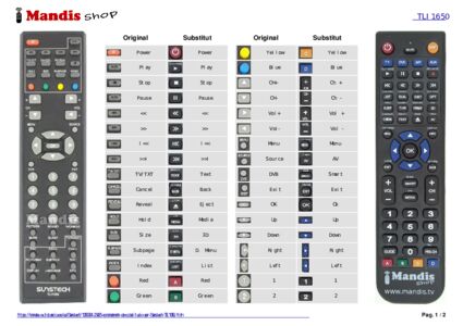 A continuació, us mostrarem la correspondència entre cada un dels botons del comandament original i el botó que realitza la mateixa funció en el comandament de substitució. En alguns casos, és possible que necessiti prémer la tecla SHIFT abans de prémer un altre botó per realitzar certes accions. Aquestes funcions addicionals sovint no s'utilitzen gaire i s'inclouen per facilitar la comprensió del comandament de substitució, o perquè el comandament original té més botons que el seu equivalent.