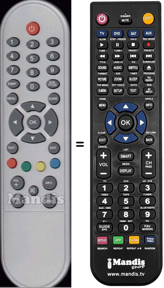 Comandament a distància que substitueix a l'original en totes les seves funcions.
