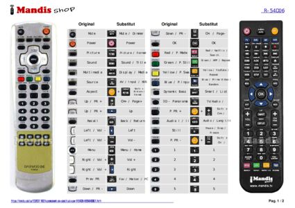 Inici > Marques > Comandaments a distància Diamond > Comandament per Diamond R-54D06 > Distribució interactiva de tecles Diamond R-54D06