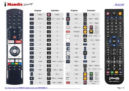 Aquest comandament a distància substitueix completament el teu RC4319P (30100830) en totes les seves funcions. No és un comandament universal, sinó una còpia exacta del teu original.