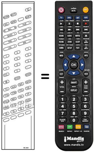 Comandament a distància que substitueix a l'original en totes les seves funcions. No es tracta d'un comandament universal sinó d'una còpia que substitueix l'original. Rebrà el comandament completament preparat per fer-lo funcionar només necessita posar-li les piles. No cal programar-lo. Té total garantia de que el comandament cumplirà amb les mateixes funcions de l'original.