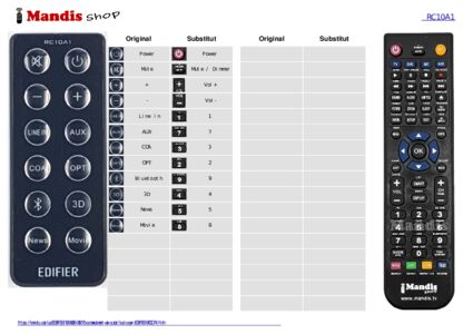 A continuació, us mostrarem la correspondència entre cada un dels botons del comandament original i el botó que realitza la mateixa funció en el comandament de substitució. En alguns casos, és possible que necessiti prémer la tecla SHIFT abans de prémer un altre botó per realitzar certes accions. Aquestes funcions addicionals sovint no s'utilitzen gaire i s'inclouen per facilitar la comprensió del comandament de substitució, o perquè el comandament original té més botons que el seu equivalent.