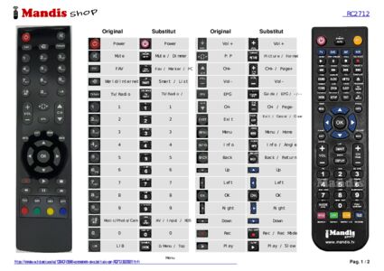 Aquest comandament a distància substitueix completament el teu RC2712 (23072119) en totes les seves funcions. No és un comandament universal, sinó una còpia exacta del teu original.