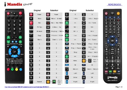 A continuació, us mostrarem la correspondència entre cada un dels botons del comandament original i el botó que realitza la mateixa funció en el comandament de substitució. En alguns casos, és possible que necessiti prémer la tecla SHIFT abans de prémer un altre botó per realitzar certes accions. Aquestes funcions addicionals sovint no s'utilitzen gaire i s'inclouen per facilitar la comprensió del comandament de substitució, o perquè el comandament original té més botons que el seu equivalent.