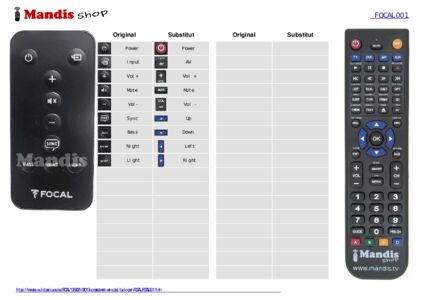 Aquest comandament a distància substitueix completament el teu FOCAL001 en totes les seves funcions. No és un comandament universal, sinó una còpia exacta del teu original.