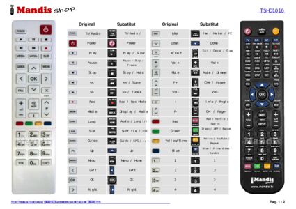 Aquest comandament a distància substitueix completament el teu TSHD1016 en totes les seves funcions. No és un comandament universal, sinó una còpia exacta del teu original.