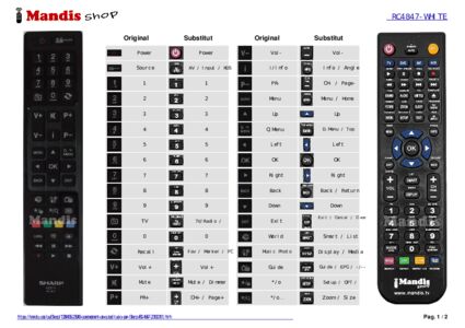 A continuació, us mostrarem la correspondència entre cada un dels botons del comandament original i el botó que realitza la mateixa funció en el comandament de substitució. En alguns casos, és possible que necessiti prémer la tecla SHIFT abans de prémer un altre botó per realitzar certes accions. Aquestes funcions addicionals sovint no s'utilitzen gaire i s'inclouen per facilitar la comprensió del comandament de substitució, o perquè el comandament original té més botons que el seu equivalent.