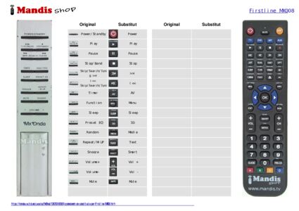 A continuació, us mostrarem la correspondència entre cada un dels botons del comandament original i el botó que realitza la mateixa funció en el comandament de substitució. En alguns casos, és possible que necessiti prémer la tecla SHIFT abans de prémer un altre botó per realitzar certes accions. Aquestes funcions addicionals sovint no s'utilitzen gaire i s'inclouen per facilitar la comprensió del comandament de substitució, o perquè el comandament original té més botons que el seu equivalent.