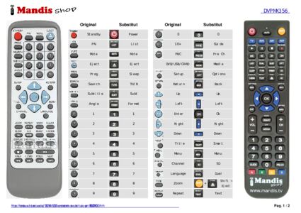 A continuació, us mostrarem la correspondència entre cada un dels botons del comandament original i el botó que realitza la mateixa funció en el comandament de substitució. En alguns casos, és possible que necessiti prémer la tecla SHIFT abans de prémer un altre botó per realitzar certes accions. Aquestes funcions addicionals sovint no s'utilitzen gaire i s'inclouen per facilitar la comprensió del comandament de substitució, o perquè el comandament original té més botons que el seu equivalent.