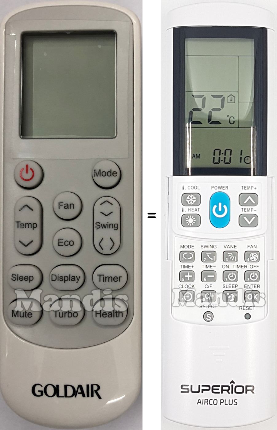 Inici > Marques > Comandaments a distància GOLDAIR > Comandament universal GOLDAIR Aircoplus (42530)