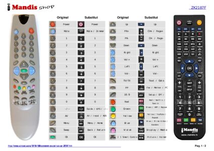 Aquest comandament a distància substitueix completament el teu ZK2187F en totes les seves funcions. No és un comandament universal, sinó una còpia exacta del teu original.