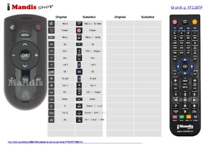 A continuació, us mostrarem la correspondència entre cada un dels botons del comandament original i el botó que realitza la mateixa funció en el comandament de substitució. En alguns casos, és possible que necessiti prémer la tecla SHIFT abans de prémer un altre botó per realitzar certes accions. Aquestes funcions addicionals sovint no s'utilitzen gaire i s'inclouen per facilitar la comprensió del comandament de substitució, o perquè el comandament original té més botons que el seu equivalent.