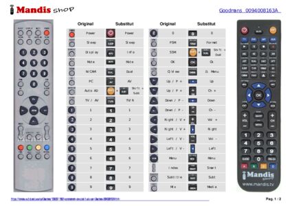Aquest comandament a distància substitueix la majoria de les funcions del teu 0094008163A. No és un comandament universal, sinó una còpia amb la majoria de les tecles i funcions del teu original.