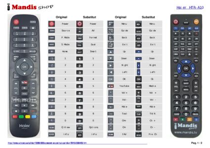 A continuació, us mostrarem la correspondència entre cada un dels botons del comandament original i el botó que realitza la mateixa funció en el comandament de substitució. En alguns casos, és possible que necessiti prémer la tecla SHIFT abans de prémer un altre botó per realitzar certes accions. Aquestes funcions addicionals sovint no s'utilitzen gaire i s'inclouen per facilitar la comprensió del comandament de substitució, o perquè el comandament original té més botons que el seu equivalent.