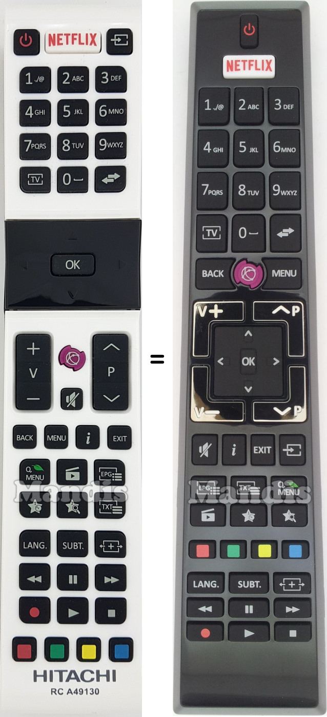 Comandaments equivalents que substitueixen en totes les seves funcions al comandament HITACHI RCA4995 (23389445):