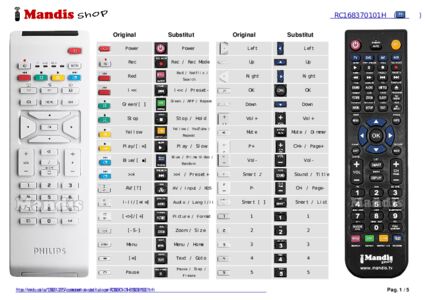 A continuació, us mostrarem la correspondència entre cada un dels botons del comandament original i el botó que realitza la mateixa funció en el comandament de substitució. En alguns casos, és possible que necessiti prémer la tecla SHIFT abans de prémer un altre botó per realitzar certes accions. Aquestes funcions addicionals sovint no s'utilitzen gaire i s'inclouen per facilitar la comprensió del comandament de substitució, o perquè el comandament original té més botons que el seu equivalent.