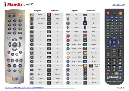 Aquest comandament a distància substitueix la majoria de les funcions del teu RS-591 UM (014002770). No és un comandament universal, sinó una còpia amb la majoria de les tecles i funcions del teu original.