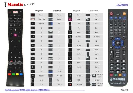 Aquest comandament a distància substitueix completament el teu RCA249101 (30095593) en totes les seves funcions. No és un comandament universal, sinó una còpia exacta del teu original.