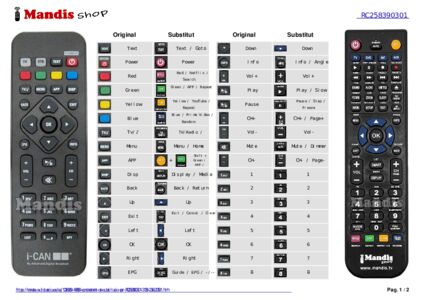A continuació, us mostrarem la correspondència entre cada un dels botons del comandament original i el botó que realitza la mateixa funció en el comandament de substitució. En alguns casos, és possible que necessiti prémer la tecla SHIFT abans de prémer un altre botó per realitzar certes accions. Aquestes funcions addicionals sovint no s'utilitzen gaire i s'inclouen per facilitar la comprensió del comandament de substitució, o perquè el comandament original té més botons que el seu equivalent.
