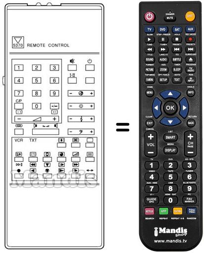 Comandament a distància que substitueix el comandament RC5370 en totes les seves funcions.