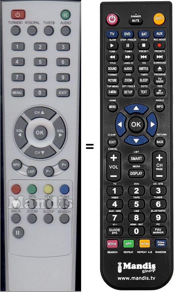 Comandament a distància que substitueix a l'original en totes les seves funcions.